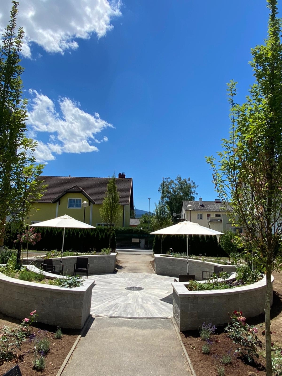 In der schönen Gartenanlage können die Bewohnerinnen und Bewohner die Natur genießen, sich zu Plaudereien treffen oder einfach in Ruhe verweilen. Obstbäume, Beerensträucher und Hochbeete laden zum Schmecken ein, Kräutergarten und Blumeninseln aktivieren den Geruchssinn. Die Hobbygärtner unter den Seniorinnen und Senioren helfen gerne bei der Gartenarbeit und kümmern sich um Kräuter, Erdbeer- und Gemüsepflanzen in den Hochbeeten.